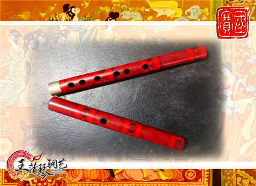曾侯乙——篪箎chí ,又名楚篪,古代八音之竹聲部,公元前244年左右的一種樂器,開有八孔,橫吹,與笛的演奏方法相似,但不同于笛,主要區(qū)別是沒有笛膜孔,吹奏時(shí)雙手掌心向里,篪身放在大拇指和食指之間,吹孔于發(fā)音孔呈90度,篪的發(fā)音比笛子要柔合,沒有那么嘹亮。戰(zhàn)國(guó)曾侯乙墓出土了2件完整的篪,影響力很大,是古代竹聲部樂器的代表。