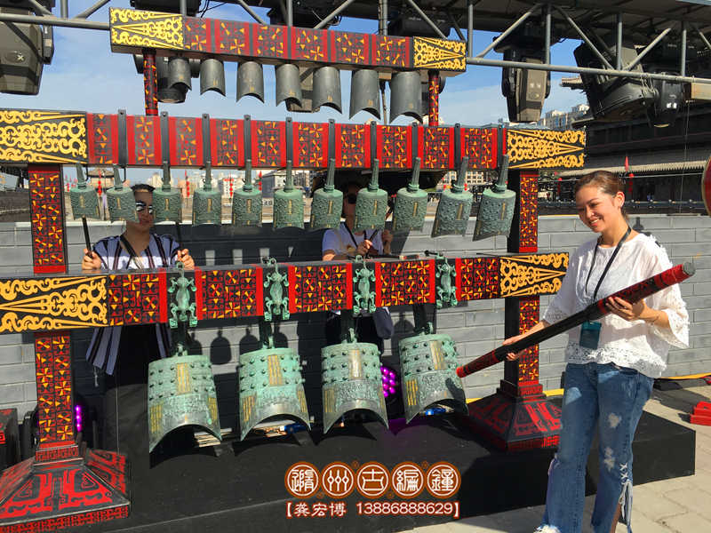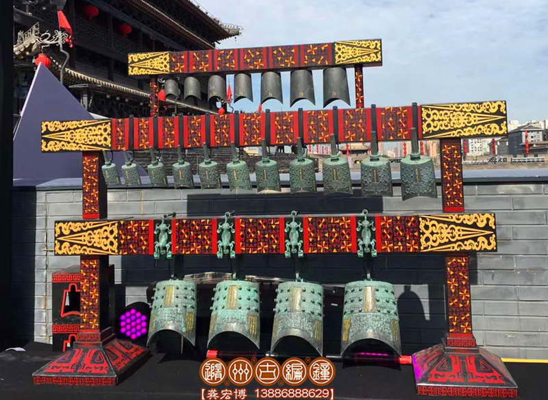 隨州古編鐘公司設(shè)計制作的22件編鐘來到西安演出照片