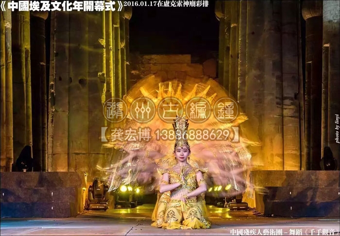 埃及當?shù)貢r間2016年1月21日,國家主席習近平和埃及總統(tǒng)塞西在古老的盧克索神廟廣場共同出席中埃建交60周年慶?;顒郁?016中埃文化年開幕式。湖北省歌舞劇院進行編鐘表演禮樂《金石合鳴》。
